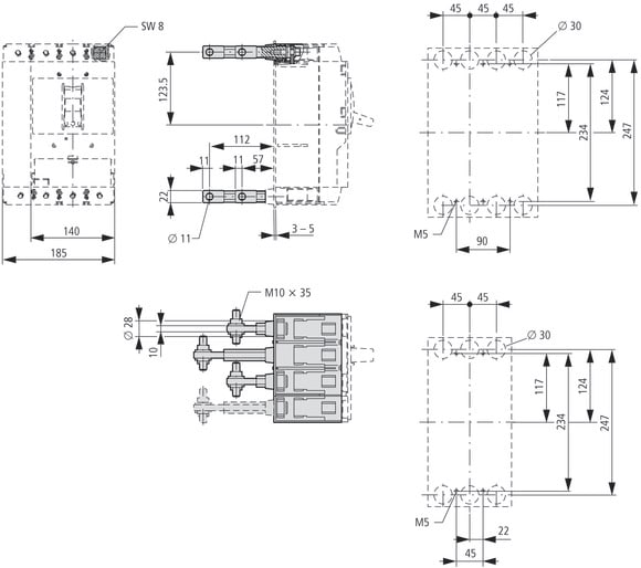Gli accessori opzionali per gli interruttori automatici della serie NZM offrono una gamma completa di opzioni di applicazione in tutto il mondo. Il montaggio è sempre flessibile e facile grazie ai gruppi di funzioni modulari. Note: il codice e il suffisso del codice includono parti per un lato interruttore automatico situato sul lato superiore o inferiore (solo con piano NZM3). Necessario con adattatore componente e interruttore con collegamento sul lato posteriore. Utilizzabile con NZM3-4, PN3-4, N(S)3-4