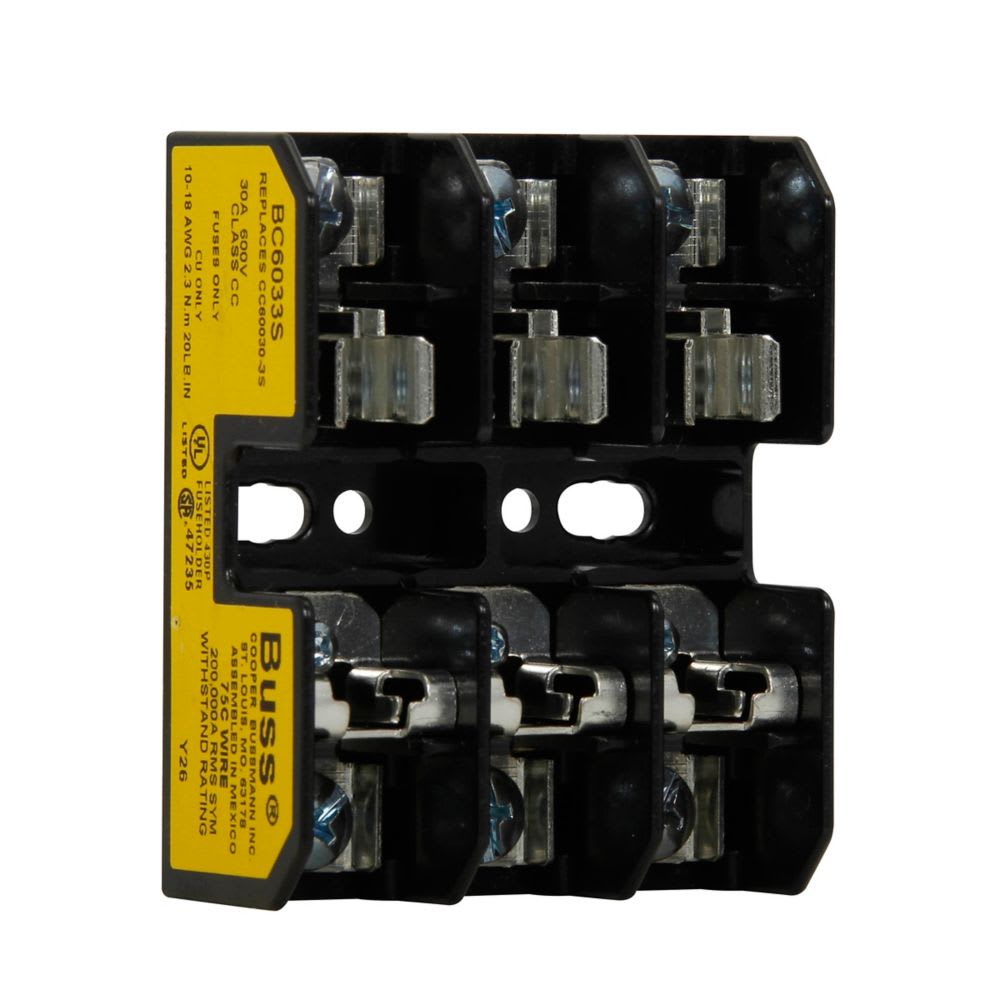 EATON INDUSTRIES - Blocco portafusibile, Bassa tensione, 30 A, AC 600 V, DC 600 V, 60 x 31 x 76 mm, CC, 3P, UL, CSA, Morsetto a vite. BC6033S