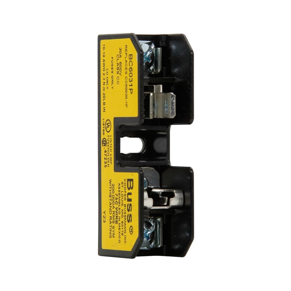 EATON INDUSTRIES - Blocco portafusibile, bassa tensione, 30 A, AC/DC 600 V, 21x31x76 mm, CC, 1P, UL, CSA, piastra di pressione. BC6031P