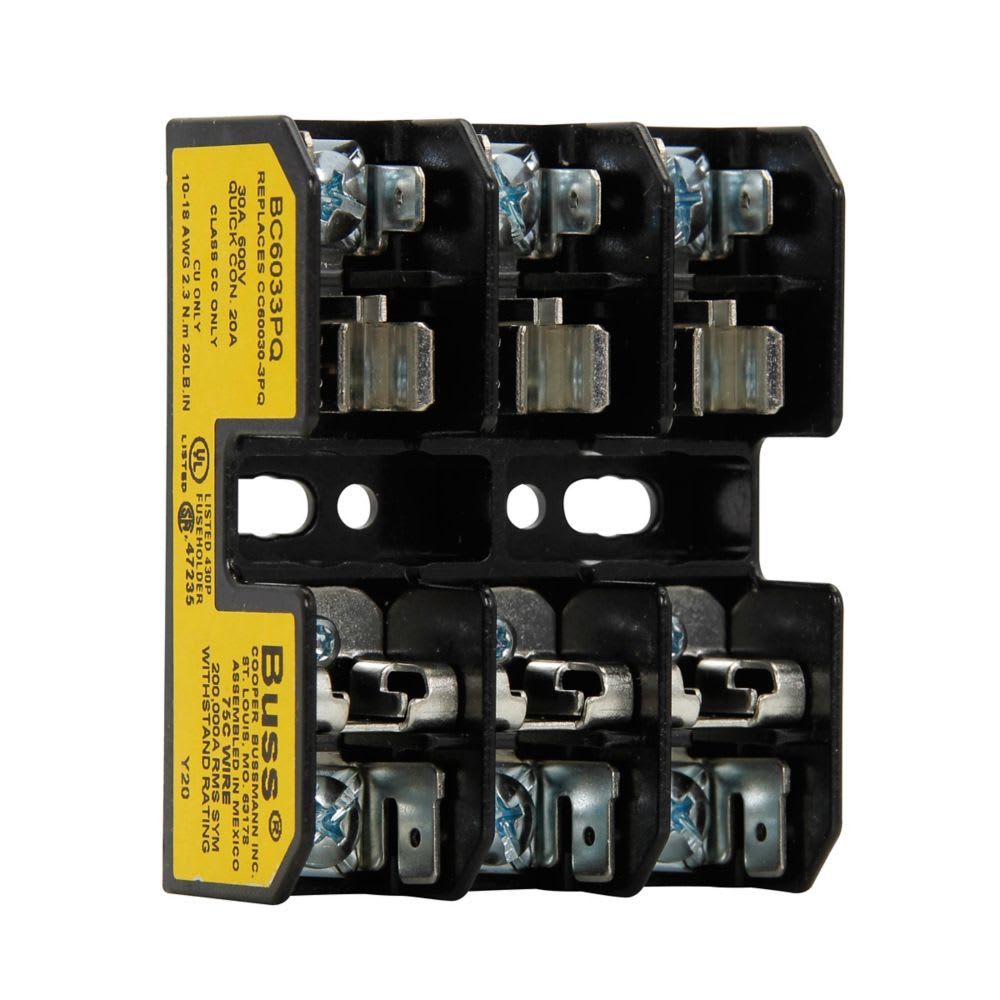 EATON INDUSTRIES - Blocco portafusibile per bassa tensione, 30 A, 600 V AC/DC, dimensioni 60 x 31 x 76 mm, 3P, UL, CSA, piastra di pressione con connessione rapida. BC6033PQ