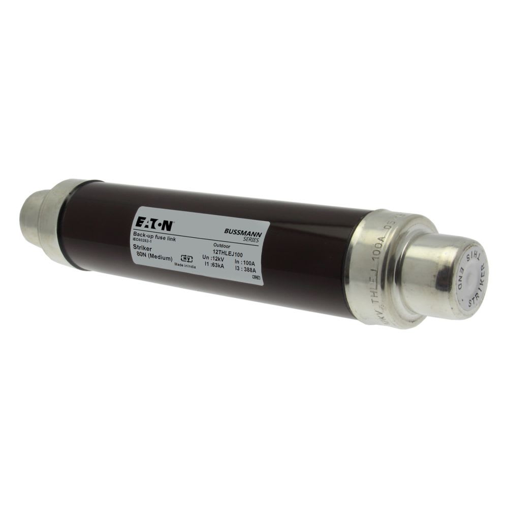 EATON INDUSTRIES - Cartuccia fusibile 12THLEJ100, 12 kV, 100 A, 2.5", DIN, 63 kA, 64 x 292 mm, Back-up, percussore, resina marrone.