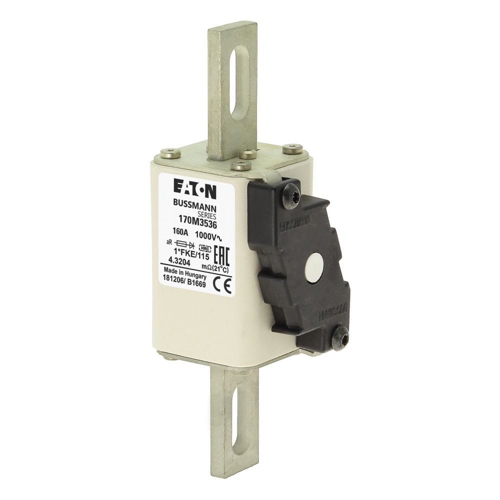 EATON INDUSTRIES - Cartuccia fusibile 160A 1000V, corsa rapida, dimensioni compatte 1,43x60x156mm, aR, IEC, indicatore singolo, 170M3536 FKE/115. 170M3536