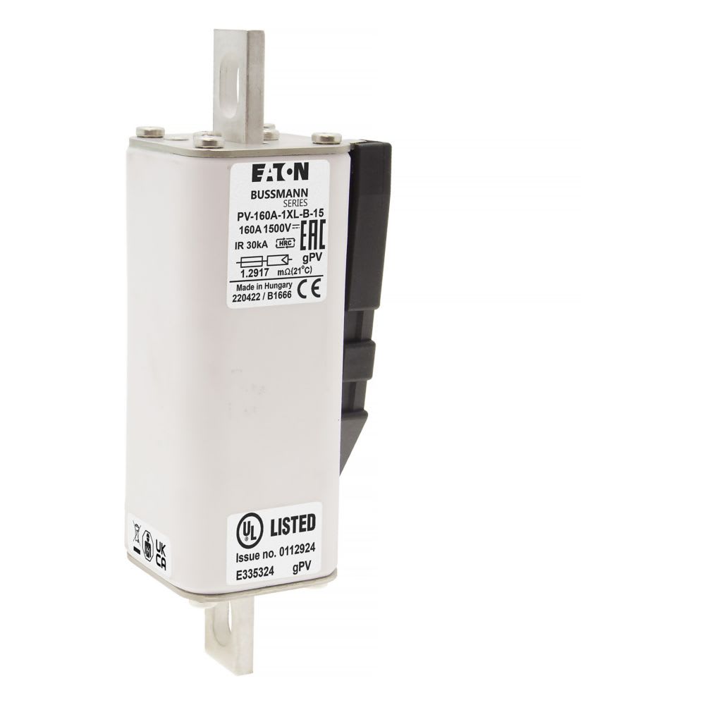 EATON INDUSTRIES - Cartuccia fusibile 160A 1500V DC 1XL 51x189mm gPV IEC UL con indicatore contatti fissaggio a bullone PV-160A-1XL-B-15 FUSE
