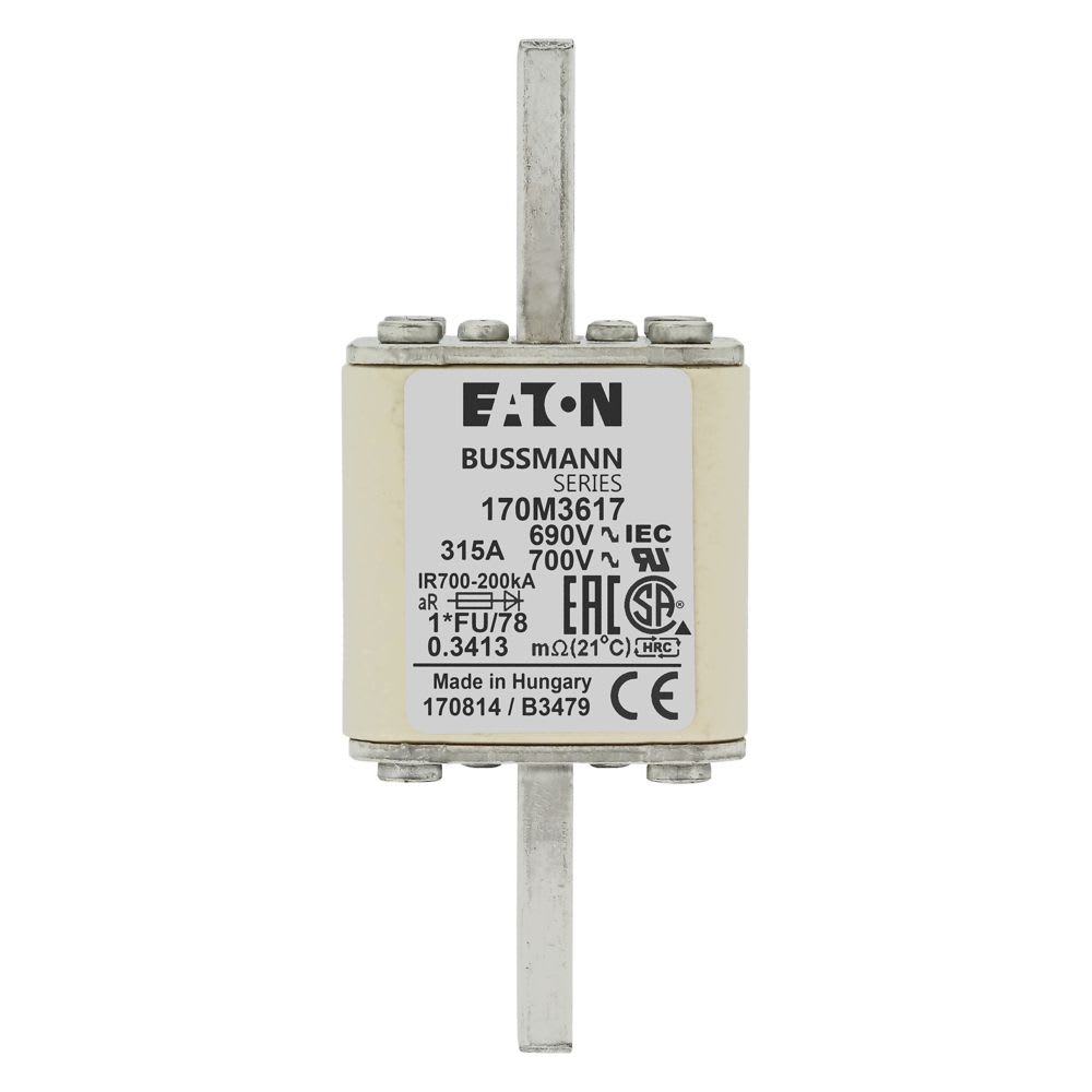 EATON INDUSTRIES - Cartuccia fusibile 170M3617, 315A, 690V, 1*FU/78, corsa rapida, dimensioni compatte 45x110mm, aR, IEC, UL, UC. 170M3617