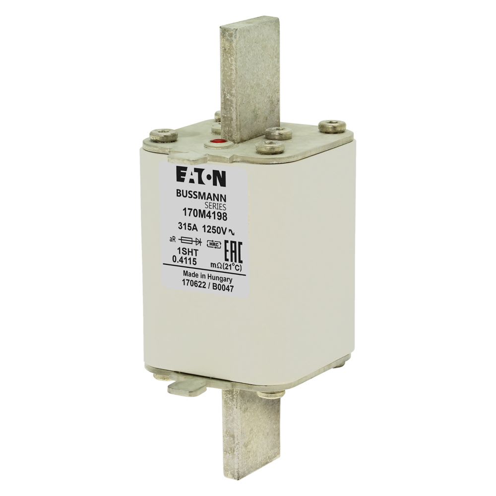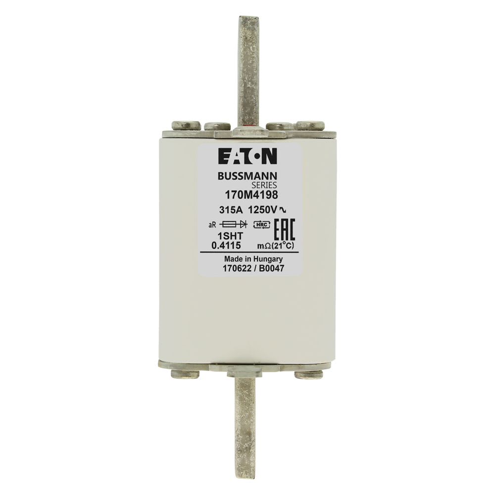 EATON INDUSTRIES - Cartuccia fusibile 170M4198, 315A, 1250V, 1SHT, corsa rapida, dimensioni 1,53x63x135mm, aR, IEC, indicatore singolo. 170M4198