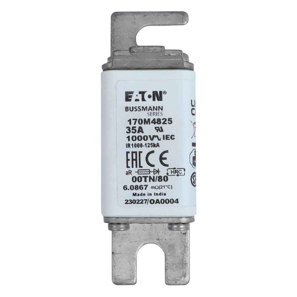 EATON INDUSTRIES - Cartuccia fusibile 170M4825, 35A, 1000V, 00TN/80, corsa rapida, dimensioni 30x47x98mm, aR, DIN, IEC, indicatore singolo. 170M4825