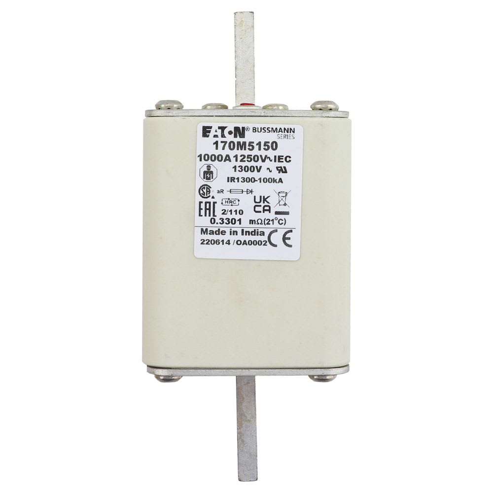 EATON INDUSTRIES - Cartuccia fusibile 170M5150, corsa rapida, 1000A, 1100V, dimensioni 2.61x75x138mm, aR, DIN, IEC, indicatore singolo. 170M5150
