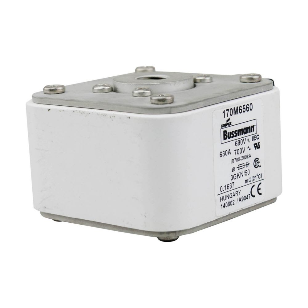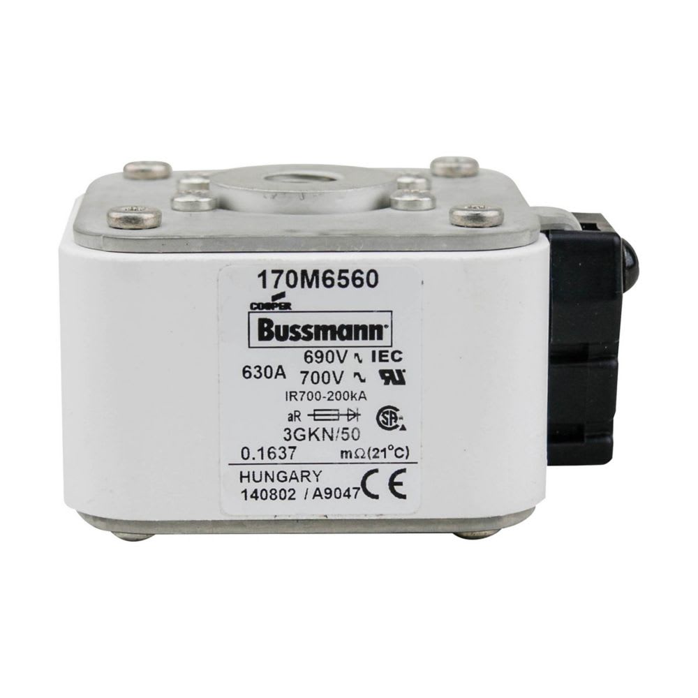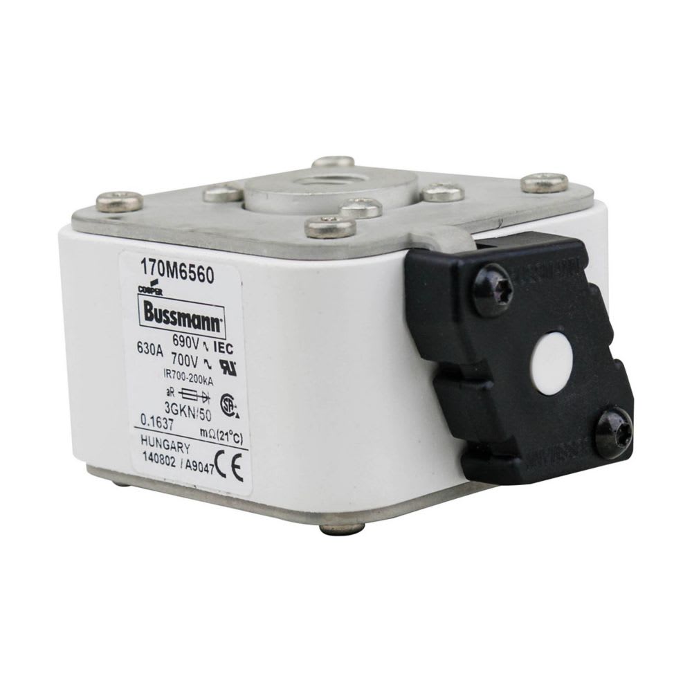 EATON INDUSTRIES - Cartuccia fusibile 170M6560, 630A, 690V, 3GKN/50, corsa rapida, dimensioni 3,76 x 92 x 53 mm, aR, IEC, UL, indicatore singolo, UC. 170M6560