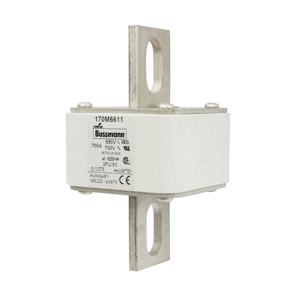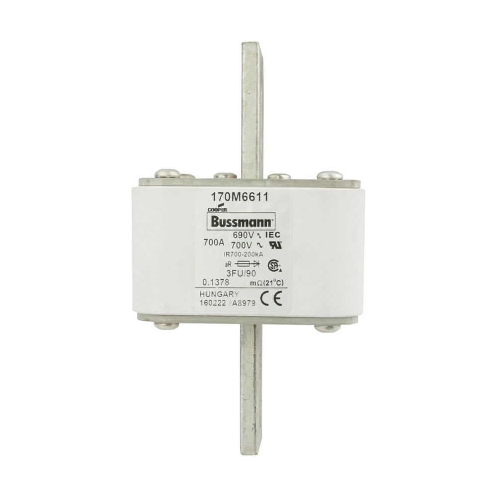 EATON INDUSTRIES - Cartuccia fusibile 170M6611, 700A, 690V, 3FU/90, 3,76 x 92 x 135 mm, AC, aR, IEC, UL, UC.