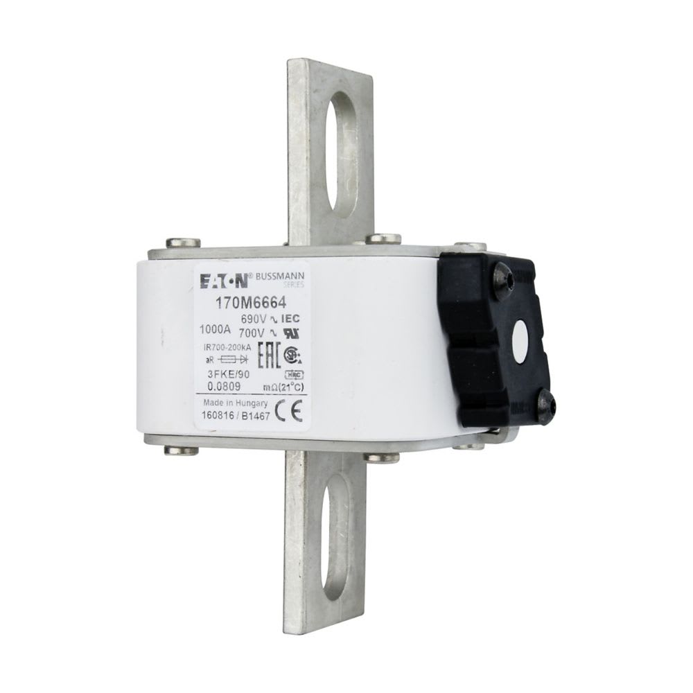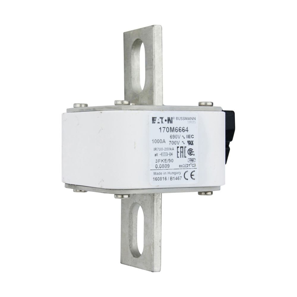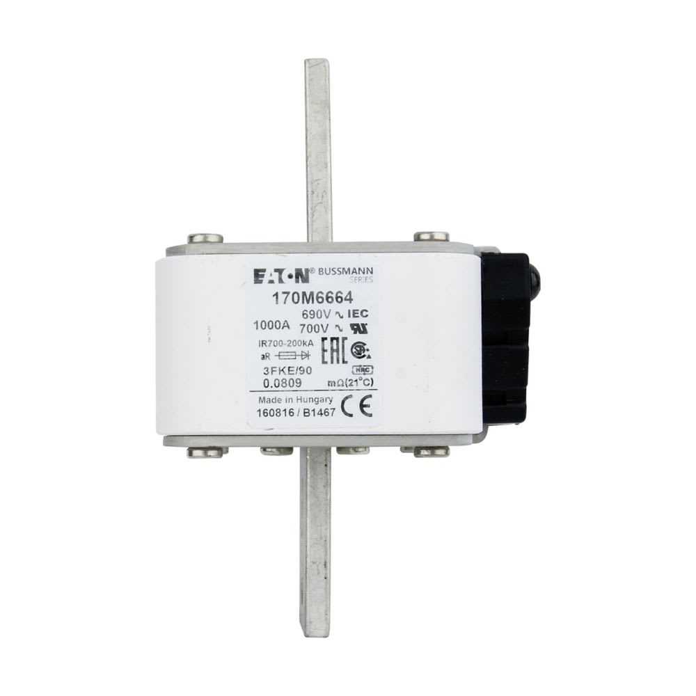 EATON INDUSTRIES - Cartuccia fusibile 170M6664, corsa rapida, 1000A, 690V, dimensioni 3,76x92x135mm, aR, IEC, UL, indicatore singolo, 3FKE/90 AR UC.