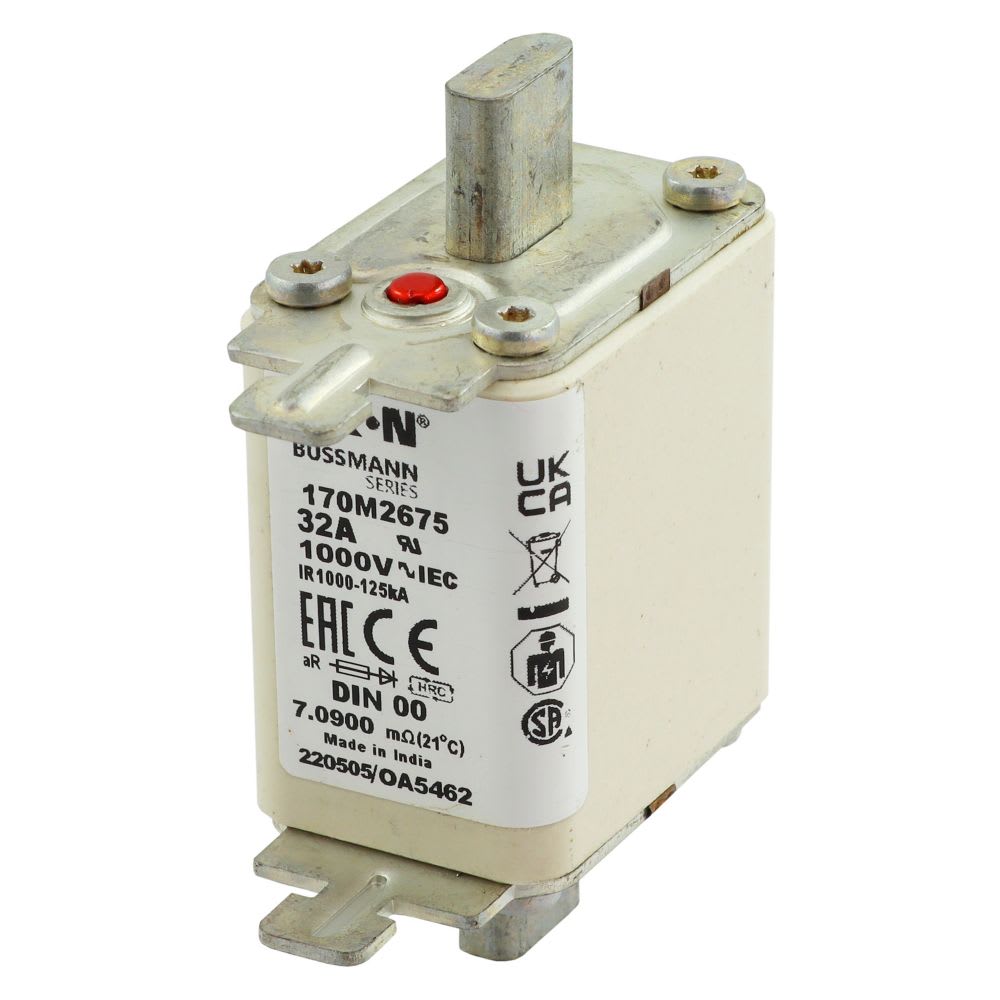 EATON INDUSTRIES - Cartuccia fusibile 32A 1000V corsa rapida DIN 00 aR IEC indicatore singolo linguette impugnatura sotto tensione 170M2675 FUSE AC DIN.