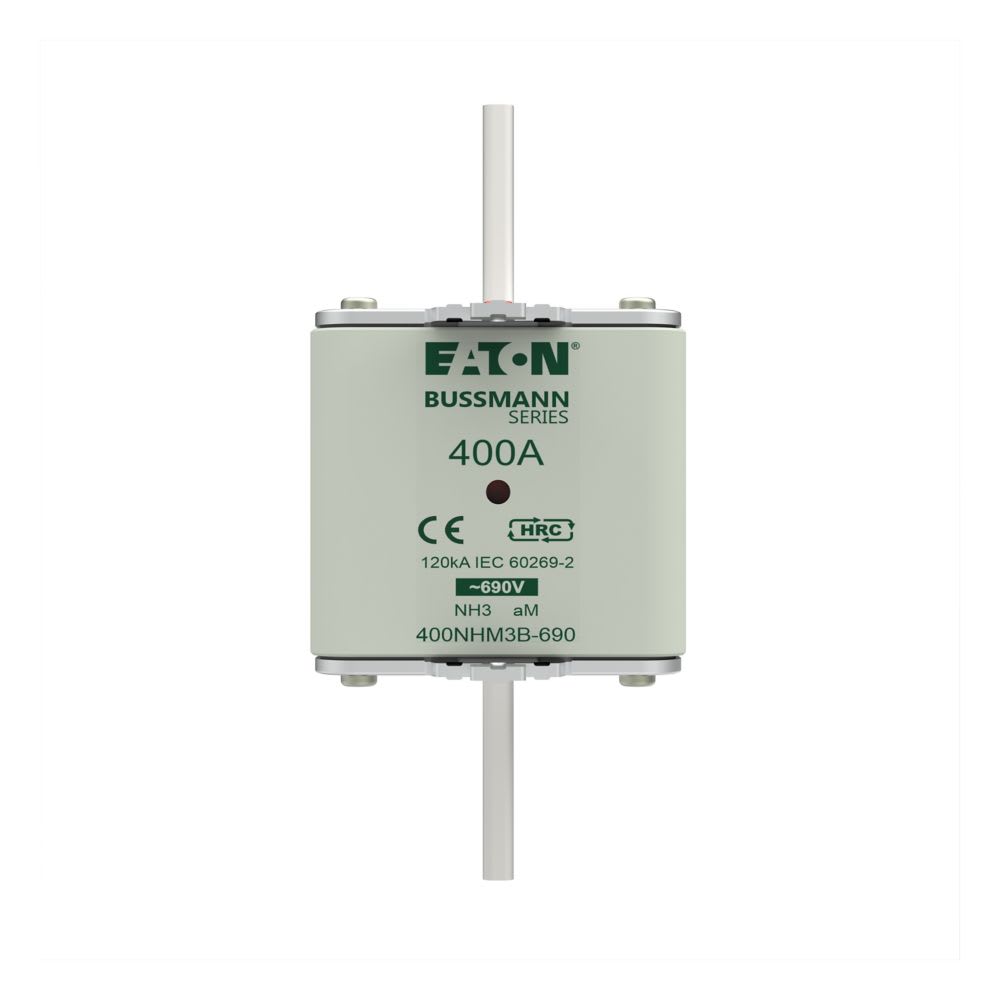 EATON INDUSTRIES - Cartuccia fusibile 400A, 690VAC, bassa tensione NH3, AM, IEC, indicatore doppio, linguette di impugnatura PLAC. 400NHM3B-690