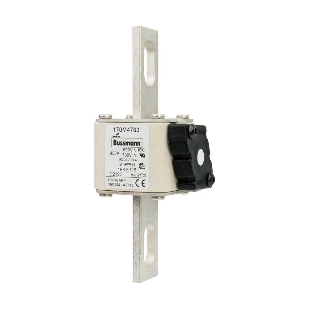 EATON INDUSTRIES - Cartuccia fusibile 450A 690V, corsa rapida, dimensioni 1,53x69x136mm, aR, IEC, UL, indicatore singolo, 170M4763 FUSE 1FKE/115 AR UC.