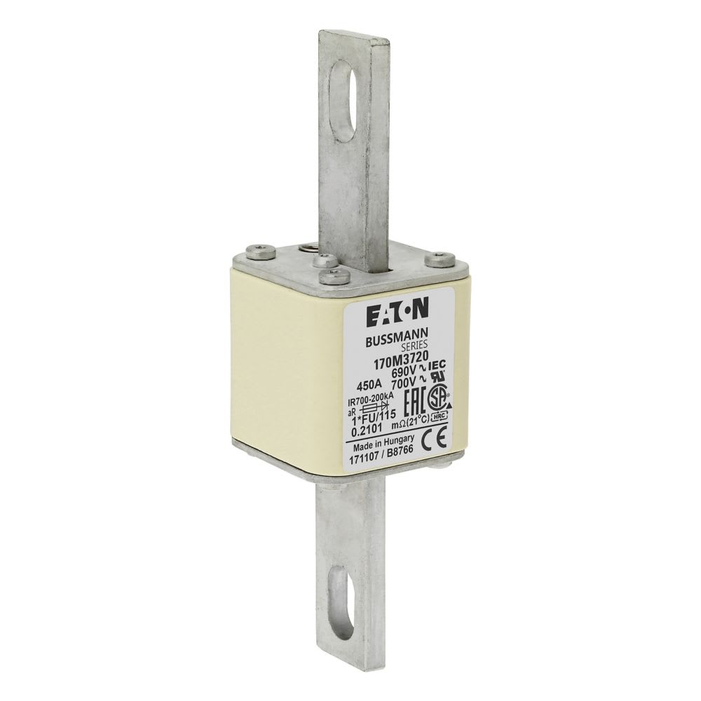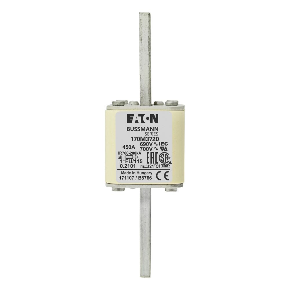 EATON INDUSTRIES - Cartuccia fusibile 450A 690V, corsa rapida, dimensioni compatte 1,45x45x148mm, aR, IEC, UL, 170M3720 FUSE UC. 170M3720