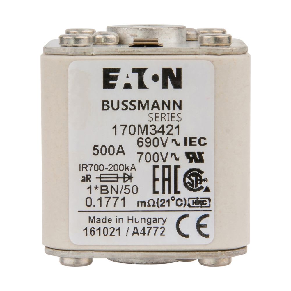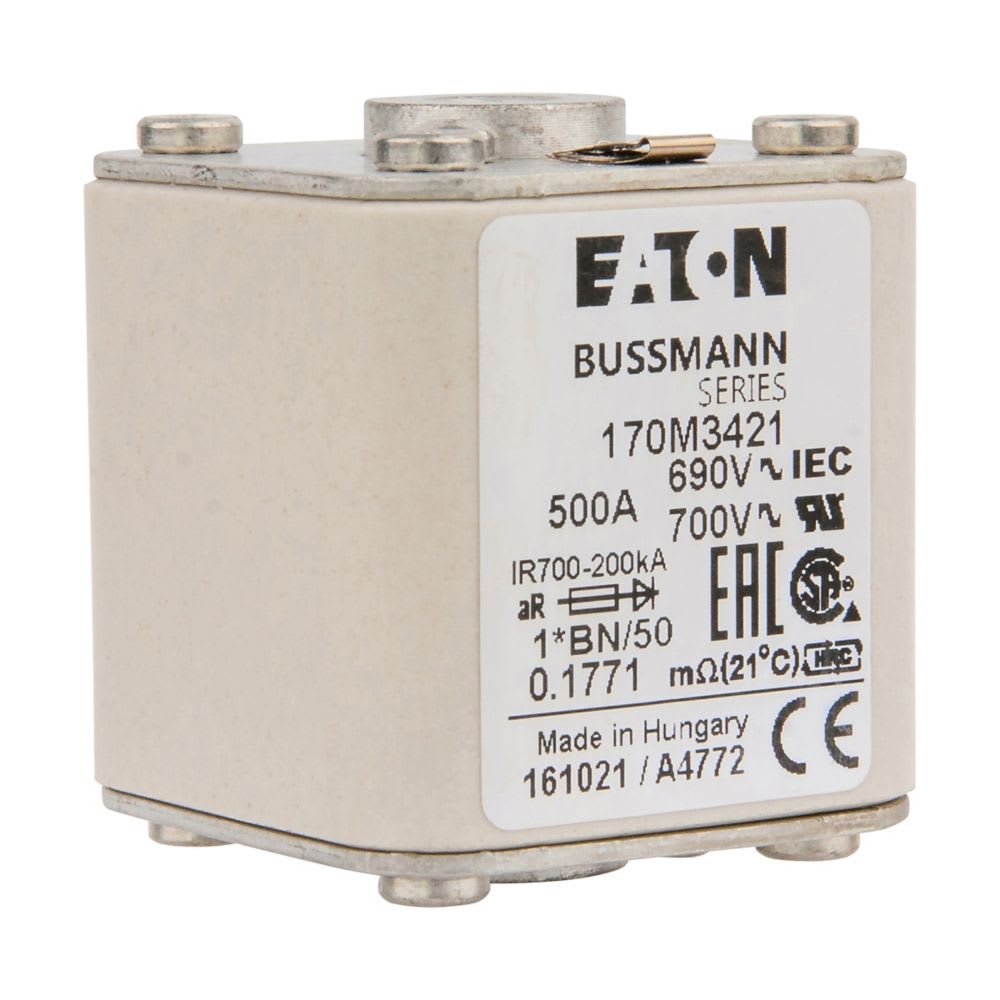 EATON INDUSTRIES - Cartuccia fusibile 500A 690V extra-rapido dimensioni compatte 1, 45 x 59 x 51 mm aR IEC UL indicatore singolo 170M3421 FUSE 1*BN/50 AR UC. 170M3421