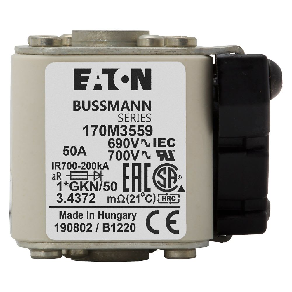 EATON INDUSTRIES - Cartuccia fusibile 50A 690V, corsa rapida, dimensioni compatte 45x59x51mm, aR, IEC, UL, indicatore singolo, 170M3559 FUSE 1*GKN/50 AR UC.
