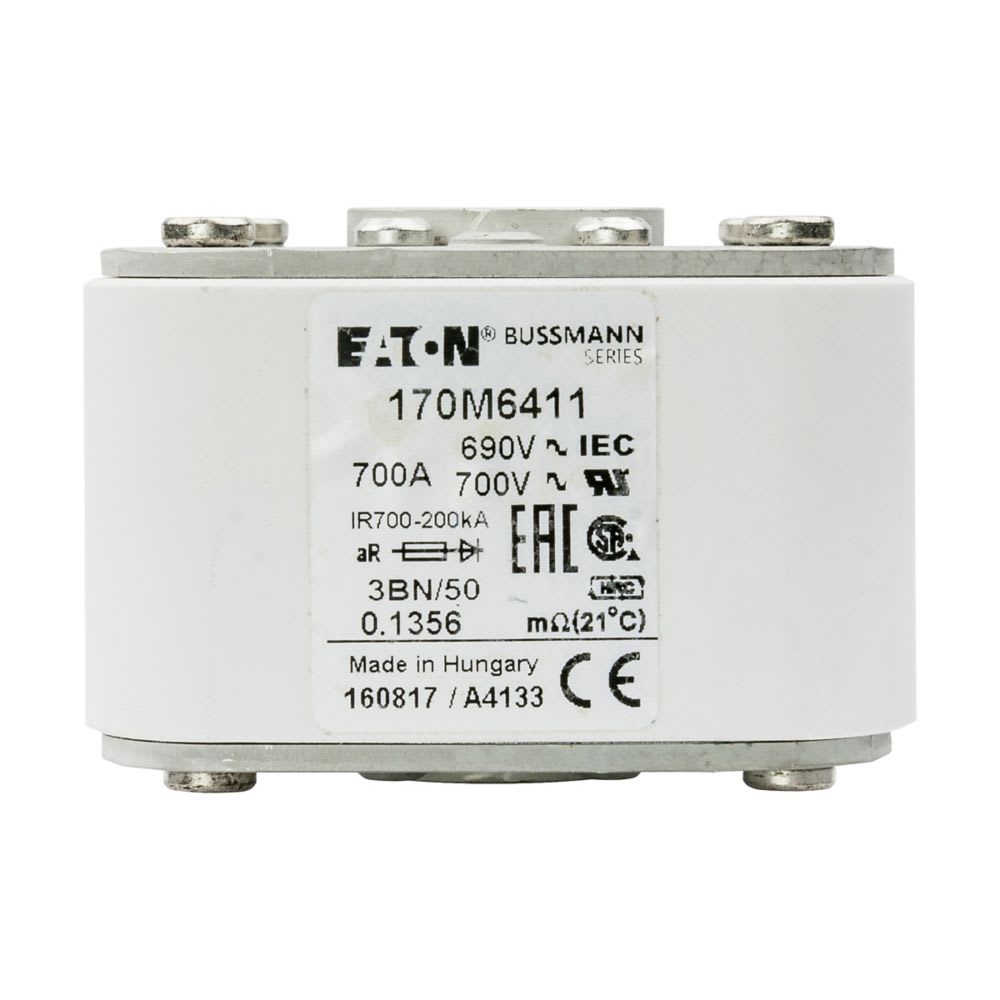 EATON INDUSTRIES - Cartuccia fusibile 700A 690V extra-rapido dimensioni 3 indicatore singolo AC 690V aR IEC UL 170M6411 FUSE 3BN/50 AR UC. 170M6411