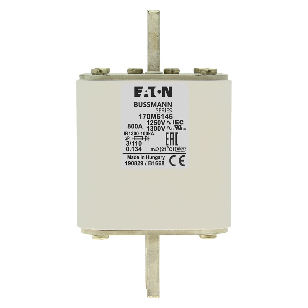 EATON INDUSTRIES - Cartuccia fusibile 800A 1250V 3/110 AR corsa rapida dimensioni 3,76 x 90 x 139 mm DIN IEC indicatore singolo 170M6146 FUSE