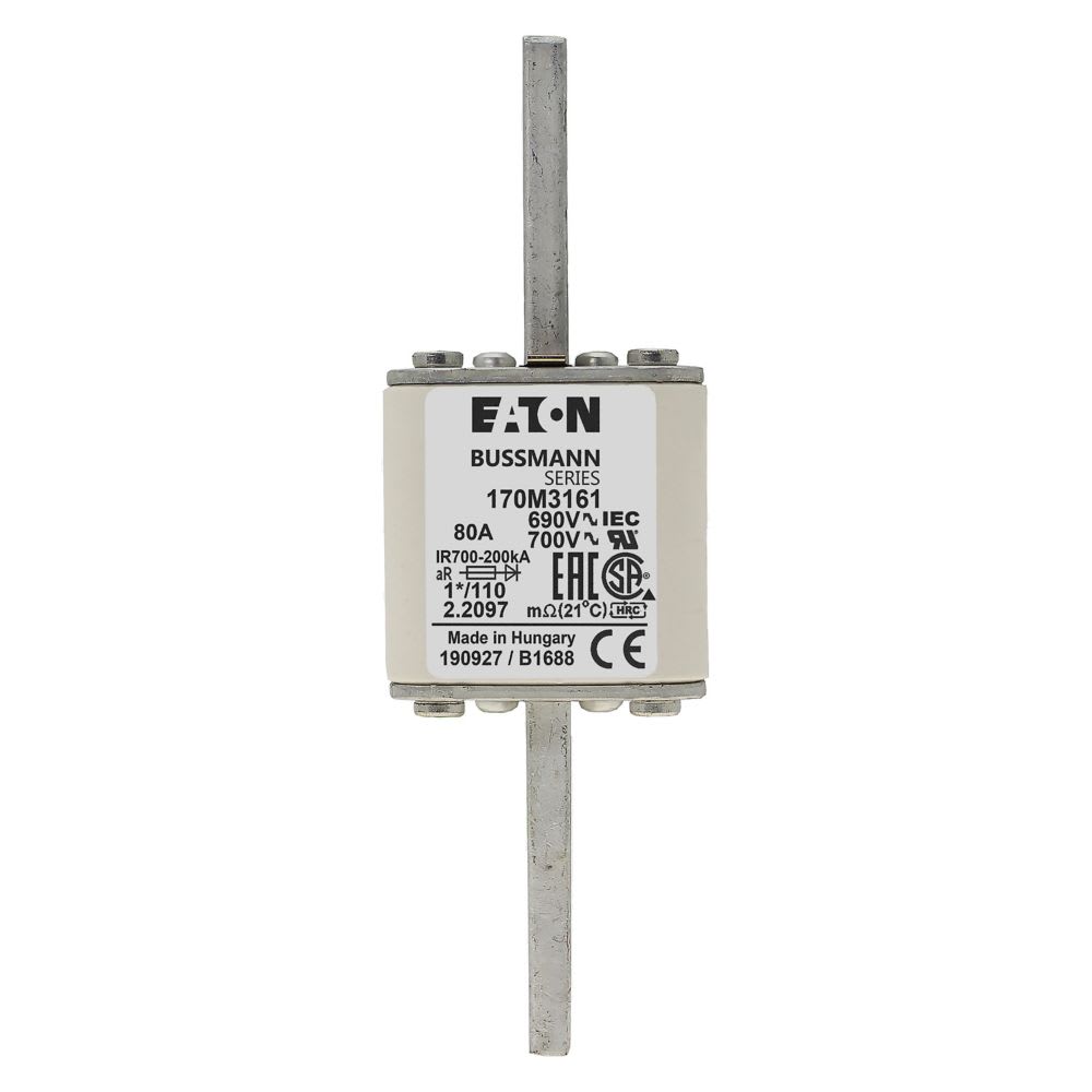 EATON INDUSTRIES - Cartuccia fusibile 80A 690V, corsa rapida, dimensioni compatte 1,45x45x134mm, aR, DIN, IEC, indicatore singolo, 170M3161 FUSE 1*/110 AR UC. 170M3161