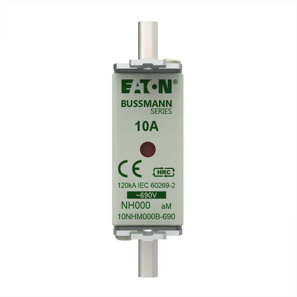 EATON INDUSTRIES - Cartuccia fusibile a bassa tensione 10A AC 690V NH000 AM IEC indicatore doppio linguette impugnatura parte inferiore. 10NHM000B-690
