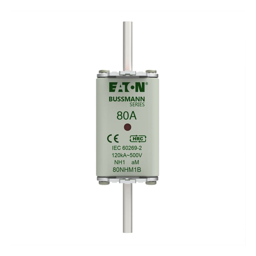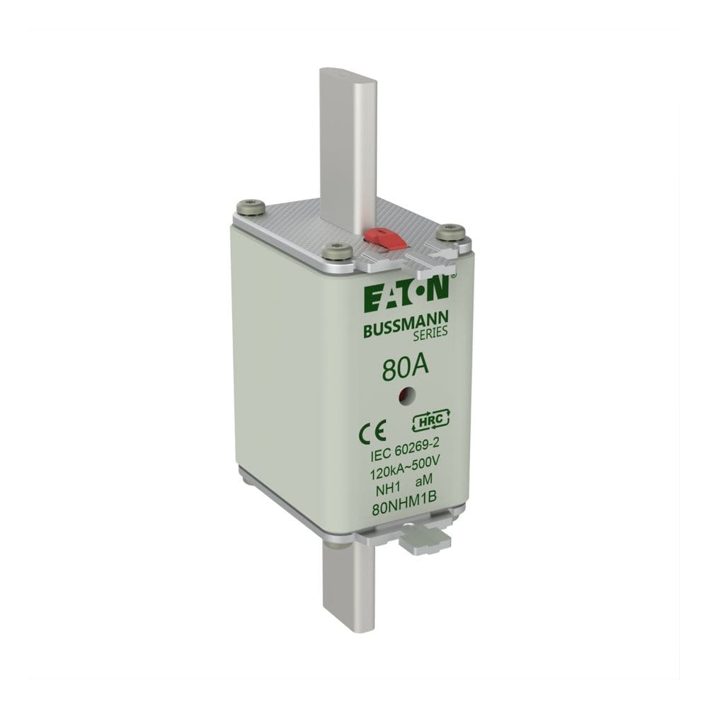 EATON INDUSTRIES - Cartuccia fusibile bassa tensione 80A AC 500V NH1 aM IEC indicatore doppio linguette impugnatura parte inferiore. 80NHM1B
