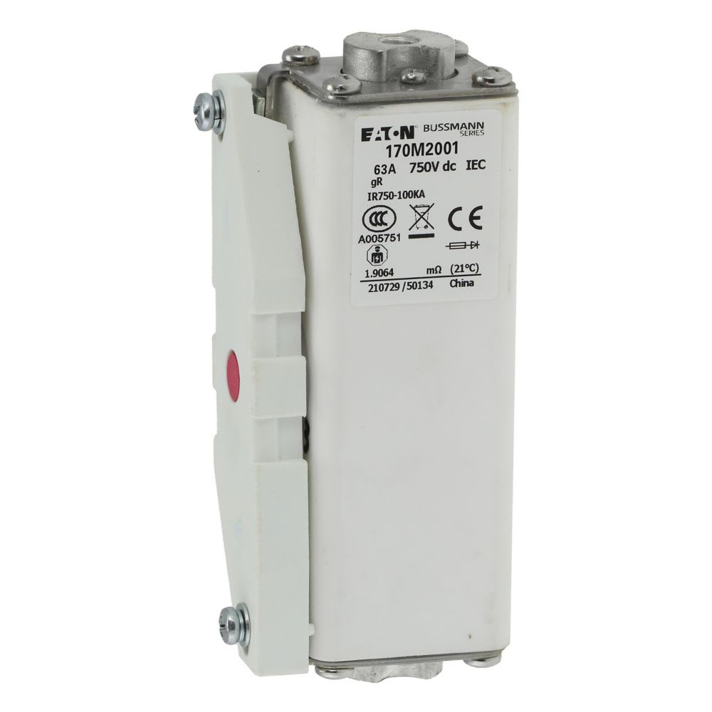EATON INDUSTRIES - Cartuccia fusibile corsa rapida 63A DC 750V dimensioni compatte 1 41 x 59 x 128mm aR IEC indicatore singolo. 170M2001