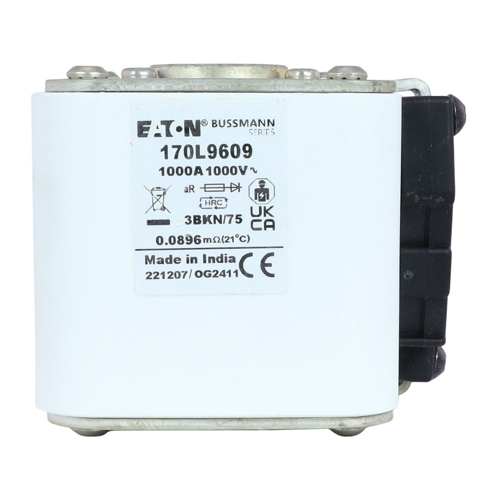 EATON INDUSTRIES - Cartuccia fusibile extra-rapida 1000A 1000V 3BKN/75 AR dimensioni 3,76 x 92 x 75mm IEC indicatore singolo. 170L9609