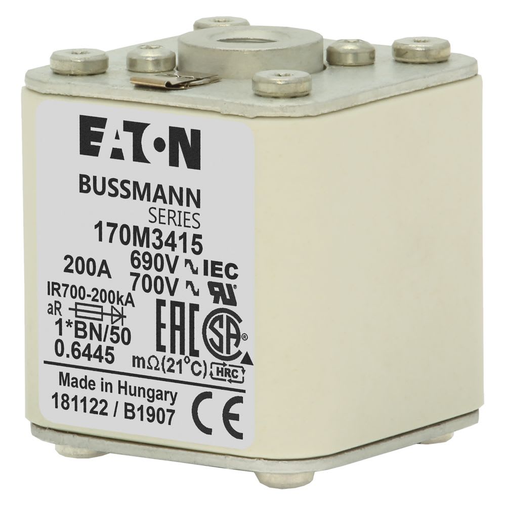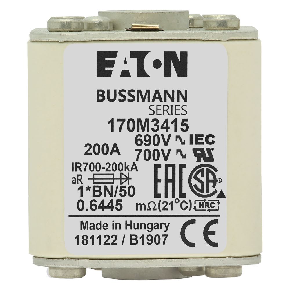 EATON INDUSTRIES - Cartuccia fusibile extra-rapida 200A 690V dimensioni compatte 1, 45 x 59 x 51 mm aR IEC UL indicatore singolo 170M3415 FUSE 1*BN/50 AR UC. 170M3415