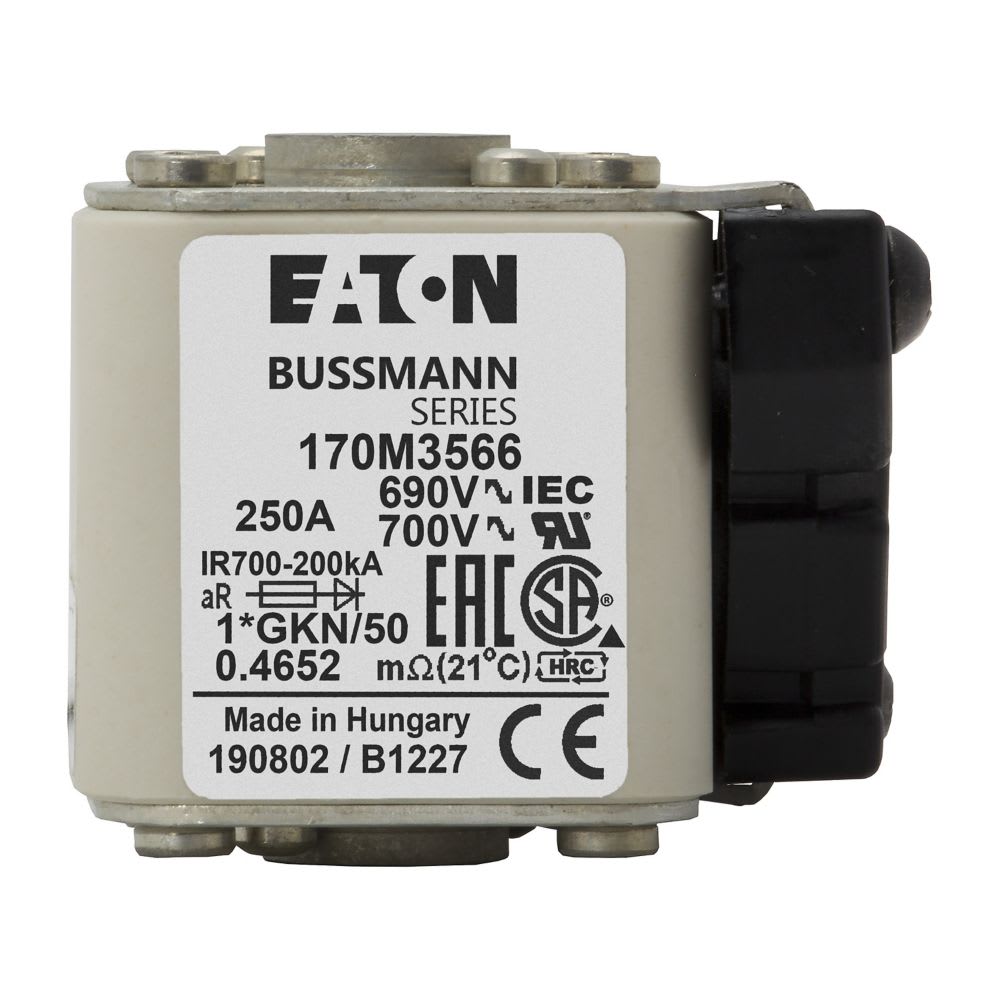 EATON INDUSTRIES - Cartuccia fusibile extra-rapida 250A 690V dimensioni compatte 45x59x51mm aR IEC UL indicatore singolo 170M3566 FUSE 1*GKN/50 AR UC.