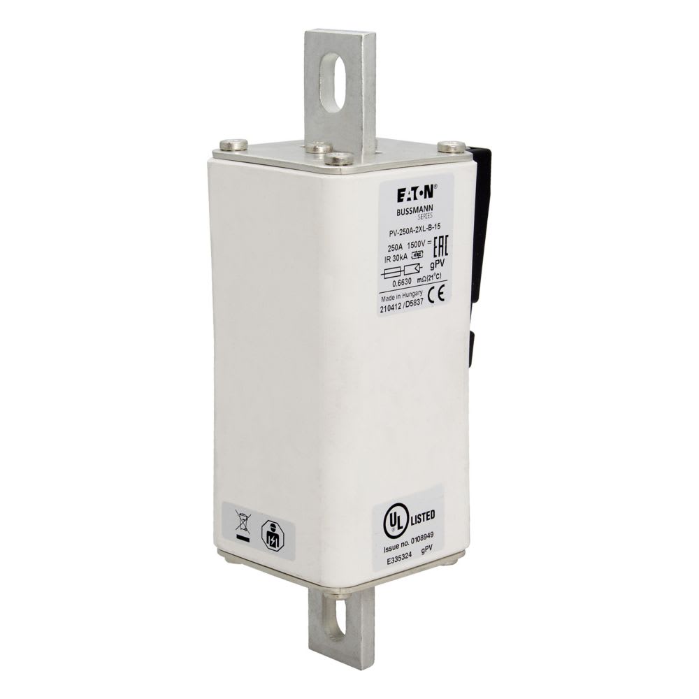 EATON INDUSTRIES - Cartuccia fusibile extra-rapida 250A DC 1500V 2XL 59x76x201mm gPV UL IEC collegamento con bulloni PV-250A-2XL-B-15 FUSE 1500V PV.