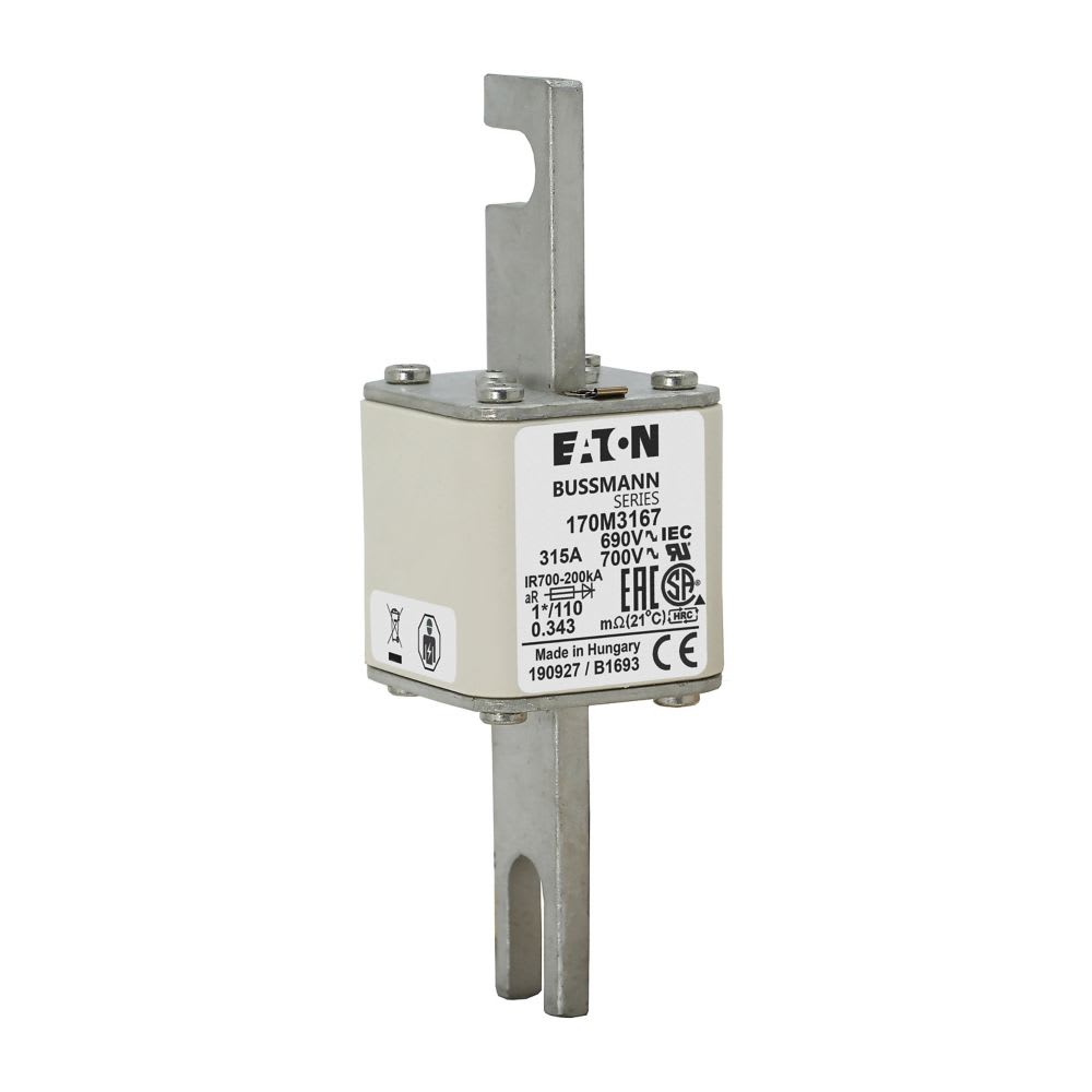 EATON INDUSTRIES - Cartuccia fusibile extra-rapida 315A 690V dimensioni compatte 1,45x45x134mm aR DIN IEC indicatore singolo 170M3167 FUSE 315A 690V 1*/110 AR UC 170M3167