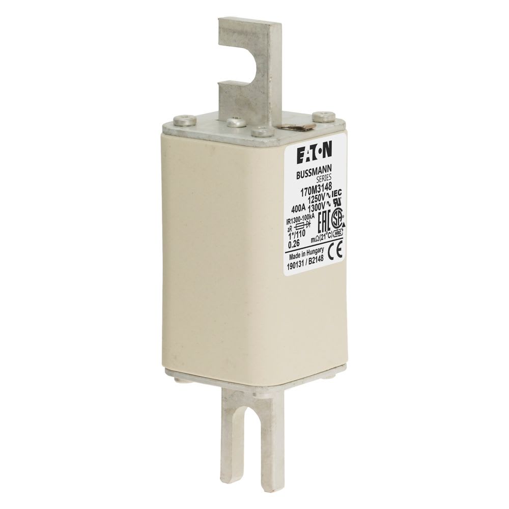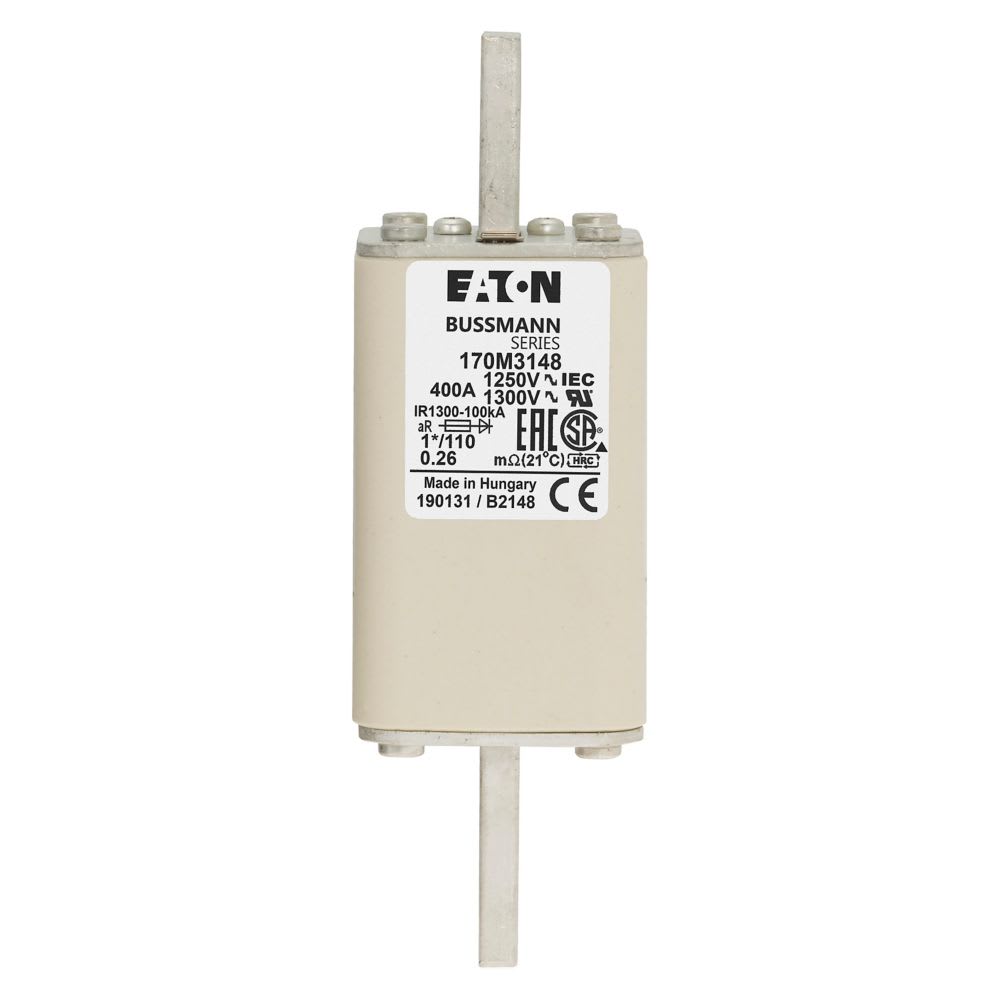 EATON INDUSTRIES - Cartuccia fusibile extra-rapida 400A 1250V dimensioni compatte 1,45x45x138mm aR DIN IEC indicatore singolo 170M3148 F USE CU 400A 1250V 1*/110 AR. 170M3148