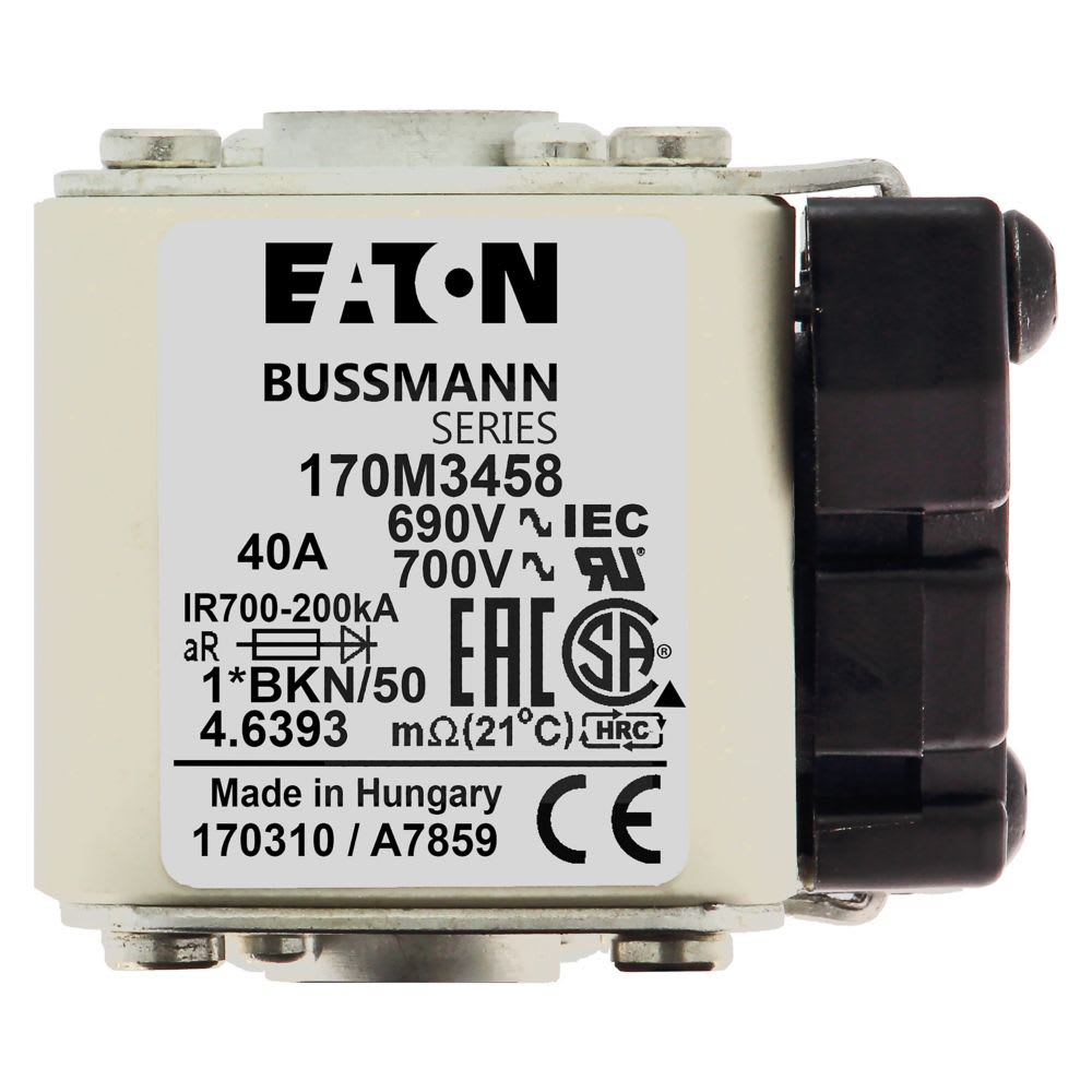 EATON INDUSTRIES - Cartuccia fusibile extra-rapida 40A 690V dimensioni compatte 1 45 x 59 x 51 mm aR IEC UL indicatore singolo 170M3458 FUSE 1*BKN/50 AR UC. 170M3458