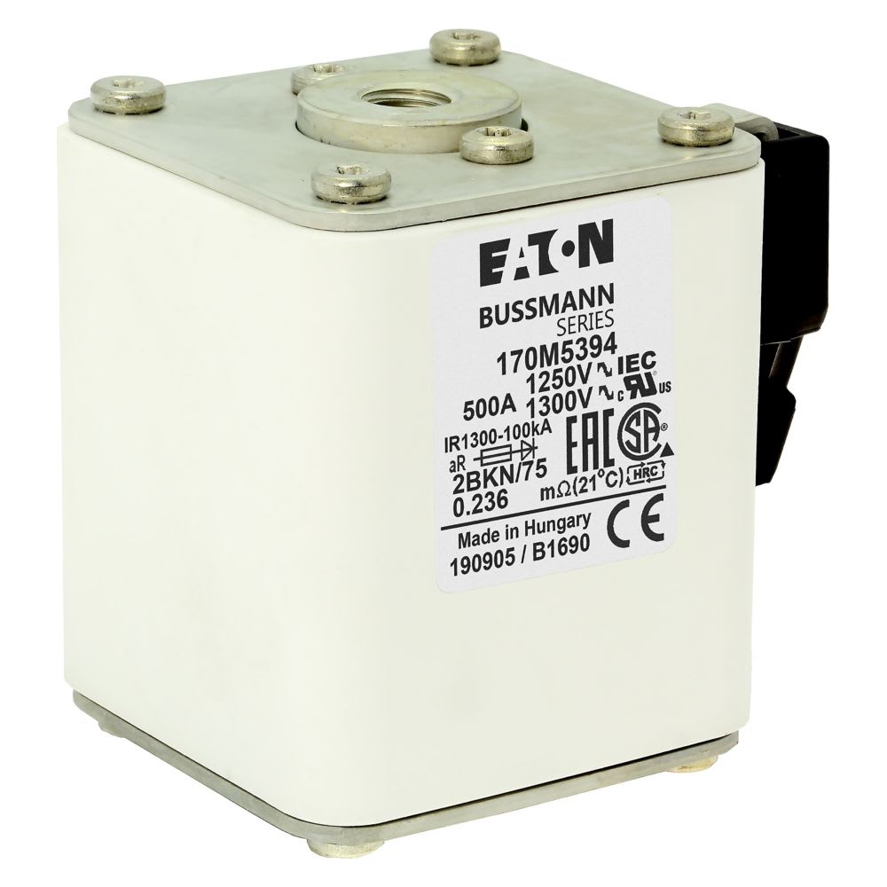 EATON INDUSTRIES - Cartuccia fusibile extra-rapida 500A 1250V 2BKN/75 AC 61x75x77mm AR CU IEC UL indicatore singolo. 170M5394