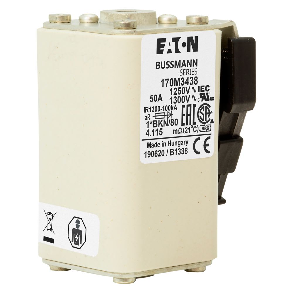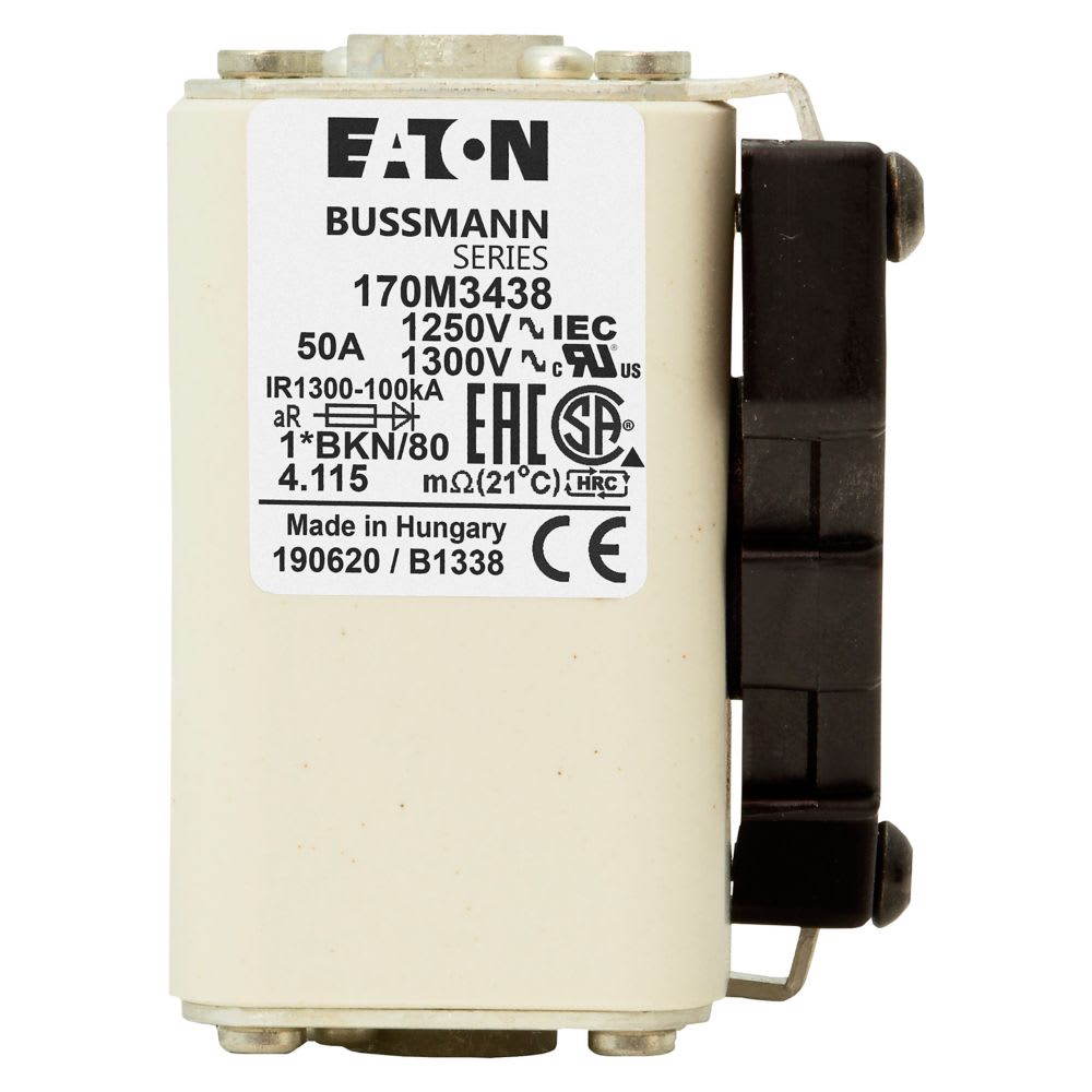 EATON INDUSTRIES - Cartuccia fusibile extra-rapida 50A 1250V dimensioni compatte 1, 45 x 59 x 81 mm aR IEC UL indicatore singolo 170M3438 FUSE 1*BKN/80 AR CU. 170M3438