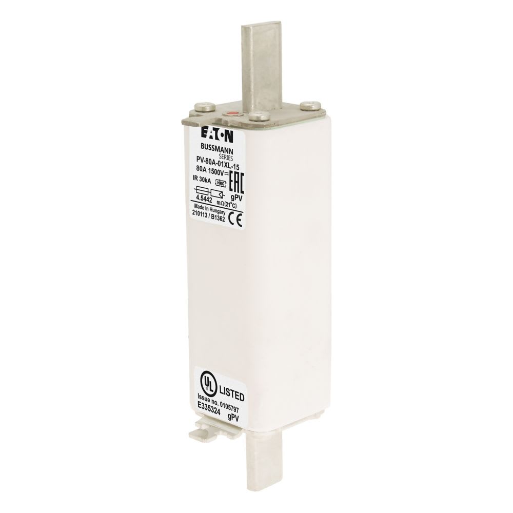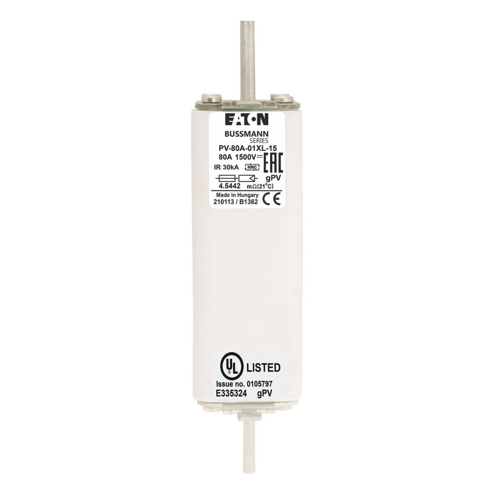 EATON INDUSTRIES - Cartuccia fusibile extra-rapida 80A DC 1500V 01XL 47x189mm gPV UL IEC con indicatore contatti a lama PV-80A-01XL-15 FUSE 80A 1500V 1*XL PV.