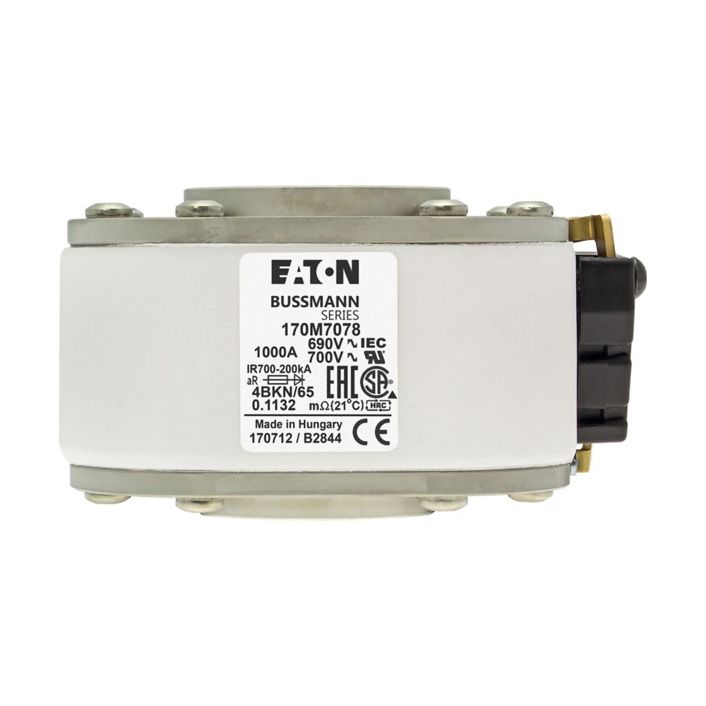 EATON INDUSTRIES - Cartuccia fusibile extra-rapido 1000A 690V 200kA dimensione 4 105x120x67mm aR IEC UL indicatore tipo K 170M7078 FUSE 4BKN/65 AR UC. 170M7078