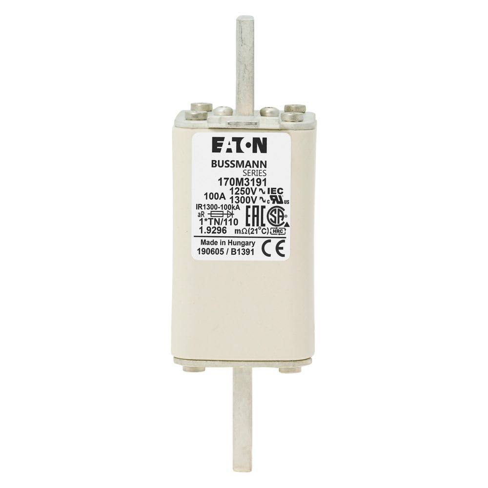 EATON INDUSTRIES - Cartuccia fusibile extra-rapido 100A 1250V dimensioni compatte 1, 45 x 58 x 138 mm aR DIN IEC indicatore singolo 170M3191 FUSE 1*TN/110 AR CU. 170M3191