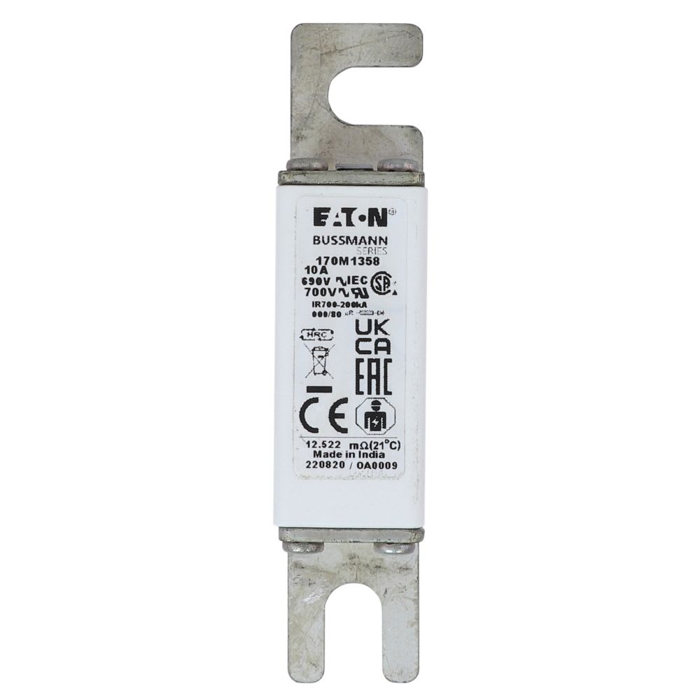 EATON INDUSTRIES - Cartuccia fusibile extra rapido 10A 690V 000/80 DIN 21x40x100mm gR IEC indicatore singolo 170M1358 FUSE UC 170M1358