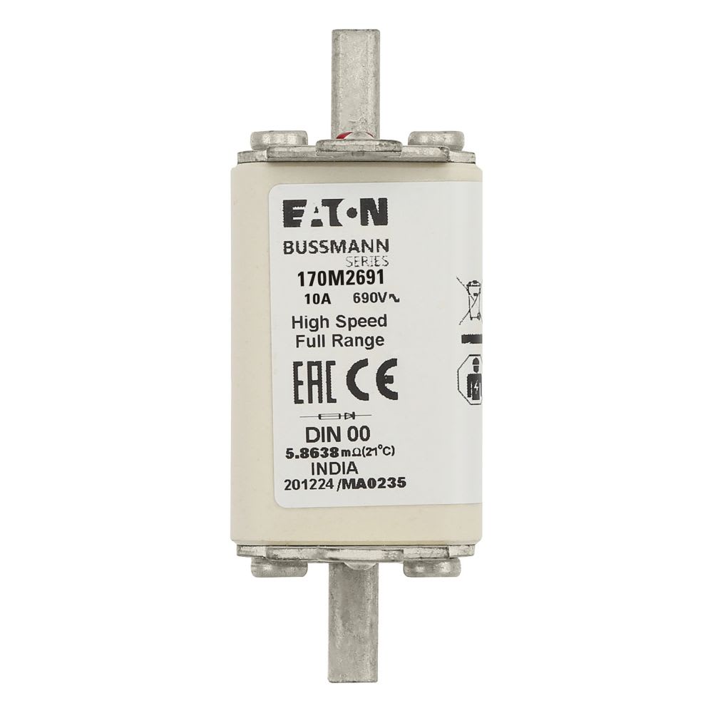 EATON INDUSTRIES - Cartuccia fusibile extra-rapido 10A 690V DIN 00 30x60x79mm gR IEC AC indicatore singolo 170M2691 FUSE. 170M2691