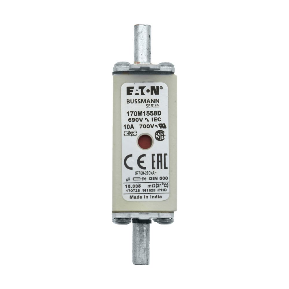 EATON INDUSTRIES - Cartuccia fusibile extra rapido 10A 690V GR DIN 000 IEC indicatore doppio linguette impugnatura sotto tensione 170M1558D HSDNH 170M1558D