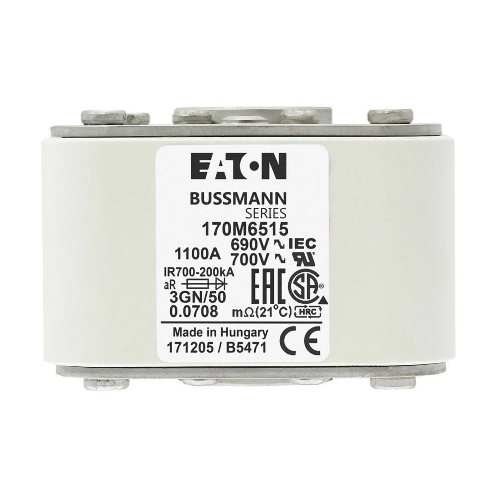 EATON INDUSTRIES - Cartuccia fusibile extra-rapido 1100A 690V 3GN/50 AR UC dimensioni 3,76 x 92 x 53mm IEC UL indicatore singolo. 170M6515
