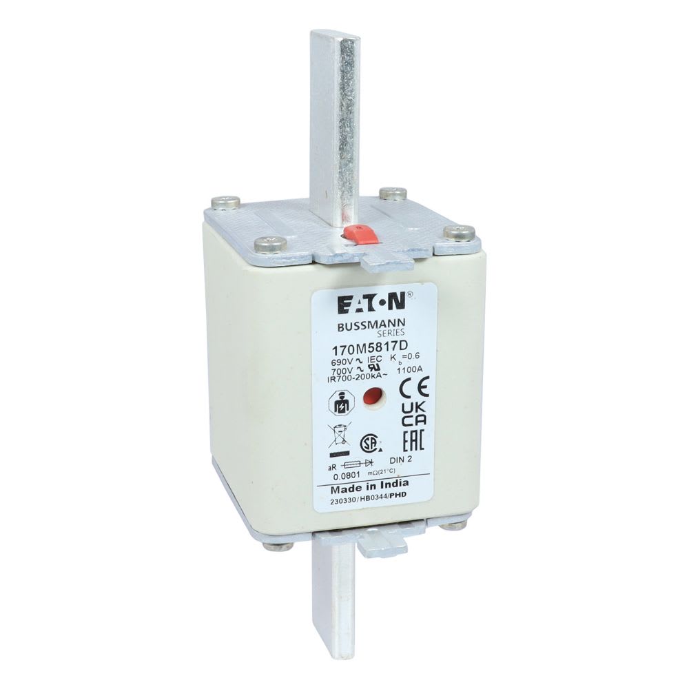 EATON INDUSTRIES - Cartuccia fusibile extra-rapido 1100A 690V AC DIN 2 aR IEC indicatore doppio linguette impugnatura sotto tensione HSDNH. 170M5817D