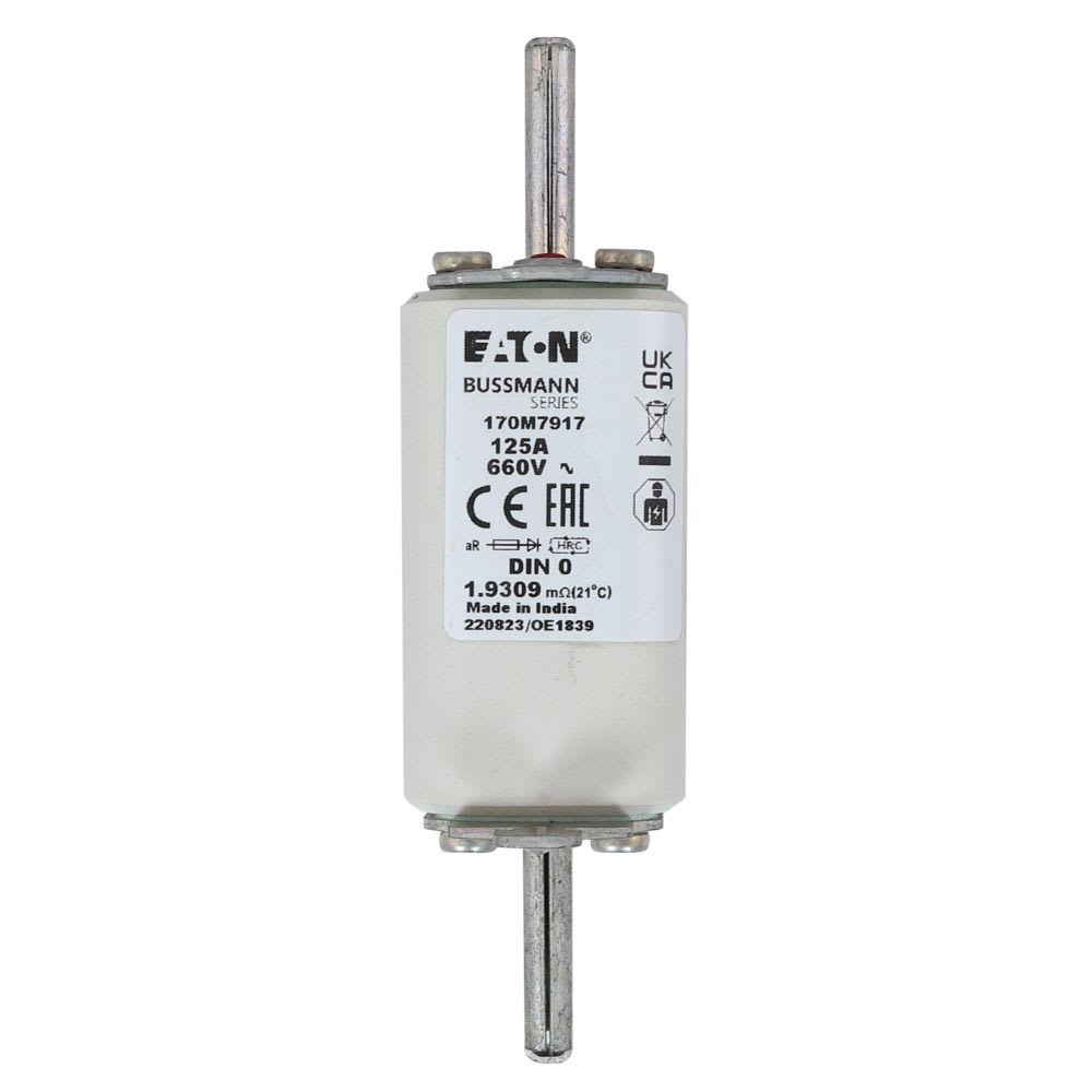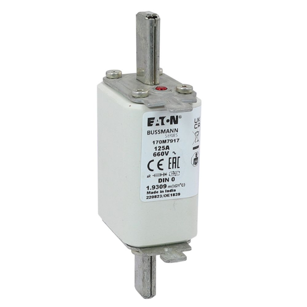 EATON INDUSTRIES - Cartuccia fusibile extra rapido 125A 660V DIN 0 aR IEC AC indicatore singolo linguette impugnatura sotto tensione 170M7917 FUSE. 170M7917