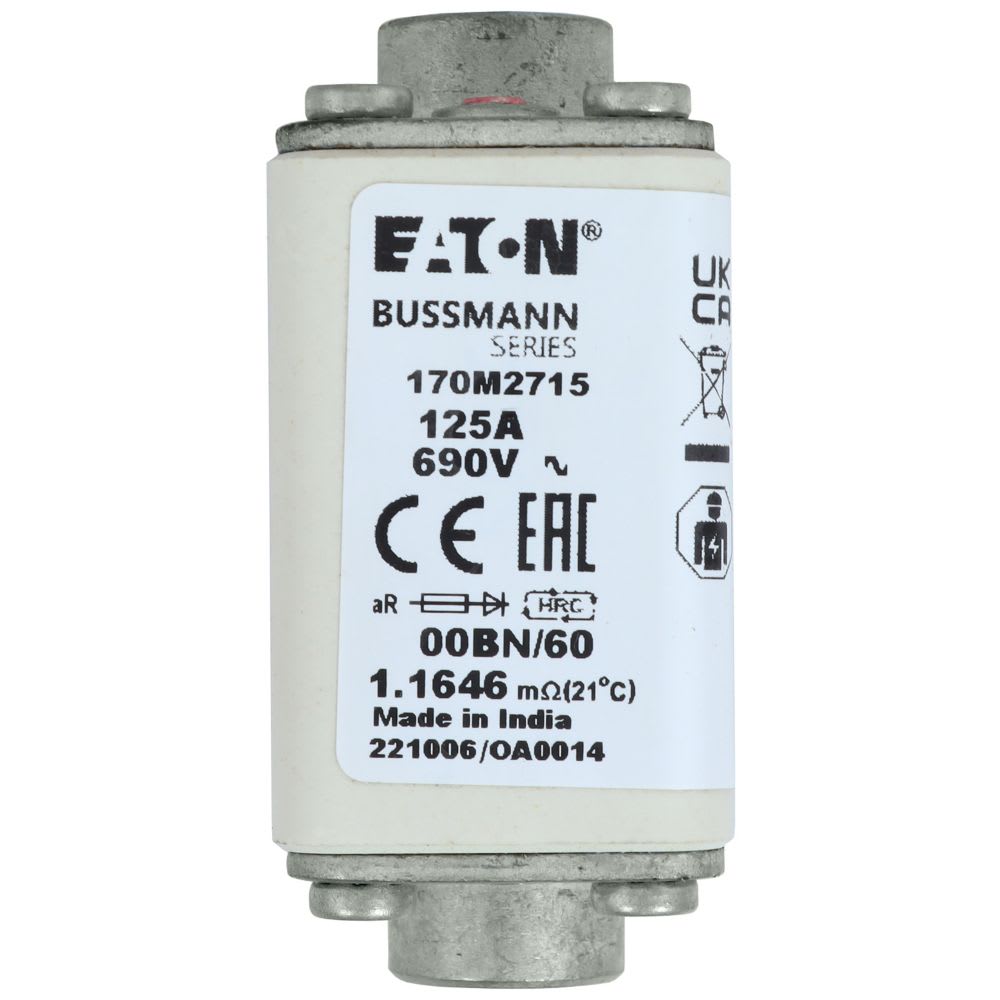 EATON INDUSTRIES - Cartuccia fusibile extra-rapido 125A 690V dimensioni 00 30x48x64mm aR IEC indicatore ottico 170M2715 FUSE 125A 690V 00BN/60 AR. 170M2715