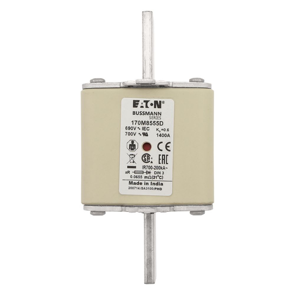 EATON INDUSTRIES - Cartuccia fusibile extra-rapido 1400A 690V AC DIN 3 aR IEC indicatore doppio linguette impugnatura sotto tensione 170M8555D FUSE HSDNH 170M8555D