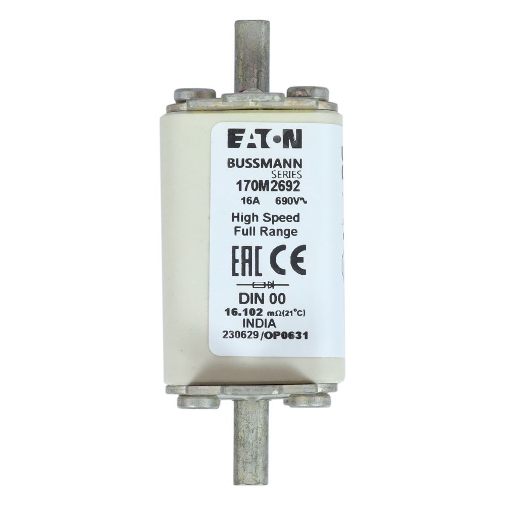 EATON INDUSTRIES - Cartuccia fusibile extra rapido 16A 690V DIN 00 30x60x79mm gR IEC AC indicatore singolo 170M2692 FUSE. 170M2692