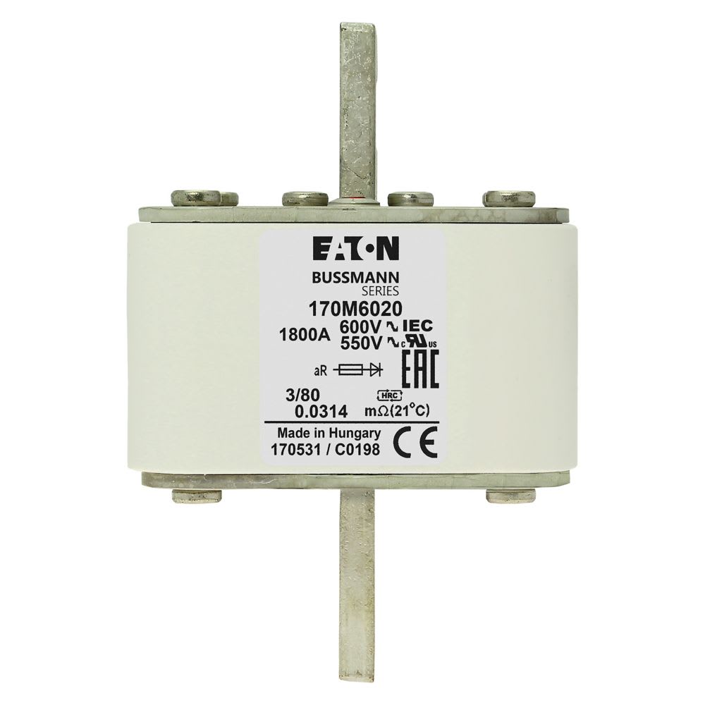 EATON INDUSTRIES - Cartuccia fusibile extra-rapido 1800A 600V DIN 3 76x109mm aR IEC indicatore singolo 170M6020 FUSE 3/80 AR UR