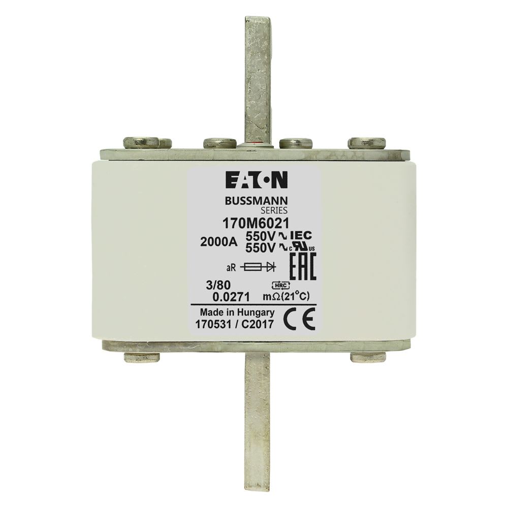 EATON INDUSTRIES - Cartuccia fusibile extra rapido 2000A 550V DIN 3 76x109mm aR IEC indicatore singolo 170M6021 FUSE 3/80 AR UR.