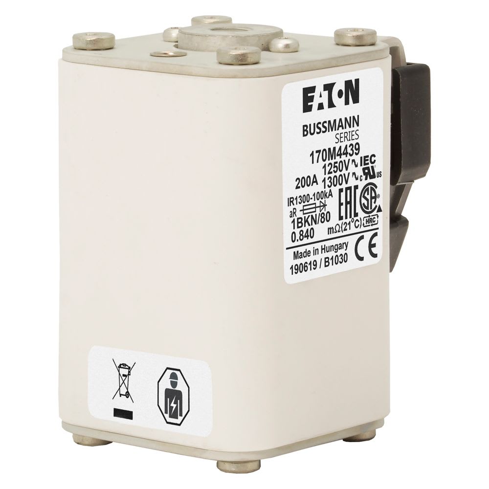 EATON INDUSTRIES - Cartuccia fusibile extra-rapido 200A 1250V 1BKN/80 AR CU dimensioni 1,53x69x80mm IEC UL indicatore singolo.
